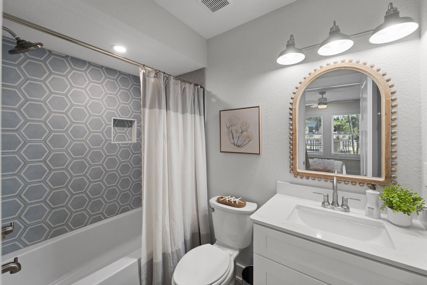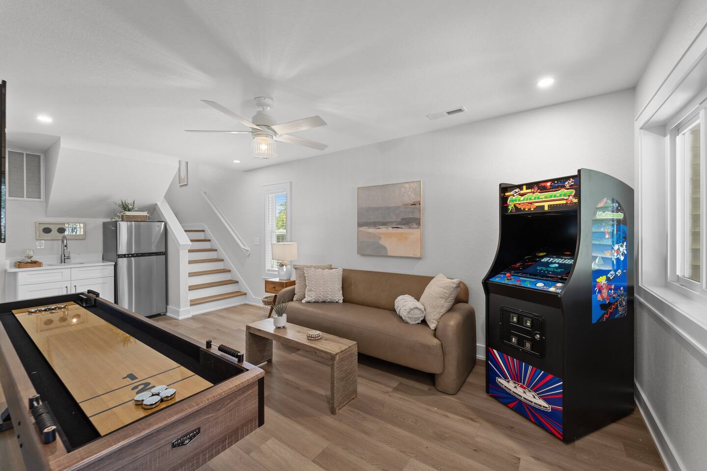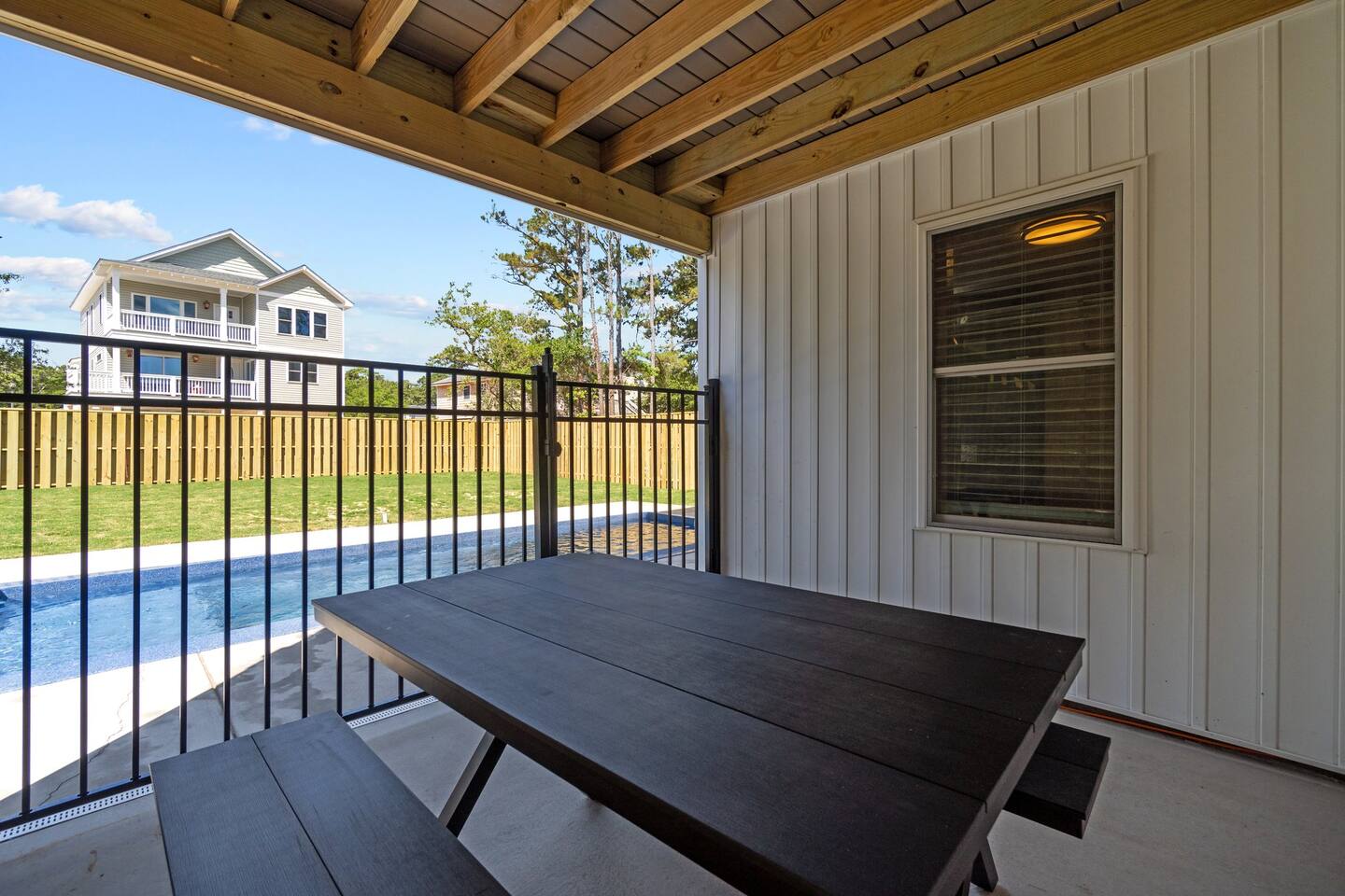 Need more space?! This property has a neighboring "twin cottage" called 'Park and Paddle'. Pool is OPEN April 25 - October 28th. Hot Tub is OPEN year-round, > Both are professionally maintained twice a week. >> Pool heat available for an additional fee. << LIMITED TIME OFFER ask us about FREE pool heat with your September or October stay. Escape to Coastal Bliss: Nags Head Retreat with Pool, Game Room, and Private Suites! Only .4 or 8 minute walk or 2 minute drive to the ocean access via Bainbridge Street or Nags Head Fishing Pier. Indulge in luxury crafted by Simpleside Construction, renowned for their award-winning craftsmanship. Relax in style with chic furnishings curated by Site to Sea Interior Design. Unwind in the serene ambiance of Nags Head, boasting tranquil surroundings and easy access to local dining, shopping, and idyllic beaches for fishing, surfing, or simply soaking up the sun. With ample living space, fenced yard, and top-notch amenities including a hot tub and video arcade, this coastal haven promises an unforgettable retreat for your family's enjoyment. Your dream vacation awaits in this coastal paradise! Where we 🌟 Shine 🌟: * NEWLY Built in 2024 on Beach Side of Nags Head * Only a .4 or 8 minute walk or 2 minute drive to the ocean access. Amble parking in Nags Head. * Easy Walkability to Nags Head Pier, Dowdy Park - Restaurant and Ice Cream! * Fully Stocked with gear for you to spend time together, cook or relax. * Baby Gear, Board Games and Bikes Available! * All beds and pillows are fully-encased part of our high-standard of cleanliness. 🌿 Discover coastal luxury at its finest in this Nags Head retreat boasting a pool, game room, private suites, and chic furnishings, providing the ultimate haven for relaxation and enjoyment. 🌿 Nestled in the heart of Nags Head, this coastal retreat epitomizes luxury living with its array of amenities and stylish touches. From the moment you arrive, you'll be captivated by the allure of the private pool, perfect for refreshing dips under the sun's warm embrace. Step inside to discover a thoughtfully designed game room, offering endless entertainment with shuffleboard and a video arcade game, ensuring fun-filled evenings for the whole family. As night falls, retire to one of three private suites, each exuding comfort and tranquility, providing a peaceful sanctuary after a day of coastal adventures. Whether you're lounging in the hot tub, soaking up the sunshine in the fenced yard, or exploring the nearby beaches and local attractions, this vacation home offers an unparalleled retreat where cherished memories are made against the backdrop of Nags Head's coastal beauty. Experience the epitome of coastal living and create unforgettable memories with your loved ones in this exquisite Nags Head retreat. Book your stay now and embark on a journey of relaxation, adventure, and pure bliss by the sea. Your dream vacation awaits! Included in your stay: ✔ Linens for Each Bed ✔ Bath Towels Provided ✔ First Roll of Paper Products ✔ Hand Soap ✔ Dish Soap and Pods ✔ Trash Bags ✔ Laundry Detergent (4 pods) 📣Stay with an experienced and creditable host! We have a great attention to detail, paired with 10 years of Hosting and Super Hosting experience. 📣Parking Space for MAX 4 Vehicles in the driveway. Please only park in the driveway to avoid ticketing. 📣Spacious Fenced Yard with Pool and Hot Tub! Three levels of decking and THE INTERIOR SPACE: ✔ Strong Wi-Fi ✔ Laundry Room w/ Washer + Dryer (Detergent Provided) ✔ Fully Supplied Kitchen KITCHEN ✔ Fully-Equipped Kitchen ✔ Stove and Oven ✔ Fridge + Freezer ✔ Toaster ✔ Kitchen Knife Block Set ✔ Cutting Board ✔ Ninja Coffee Maker ✔ Hot Water Kettle ✔ Dishes ✔ Silverware ✔ Glasses ✔ Wine Glasses ✔ Coffee Mugs LIVING ROOM // DINING - TOP LEVEL ✔ Sofa ✔ Love Seat ✔ Coffee Table ✔ Throw Pillows + Blankets ✔ Board Games ✔ Smart TV ✔ Dining Table with Seating for 6 ✔ Breakfast Bar/Island Seating for 4 THE SLEEPING ARRANGEMENTS | King Bedroom | ♛ 1 Bedroom w/ 1 King Bed ♛ Bed Linens, Quilt, Throw Blanket and 4 Pillows Per Bed ♛ 40in Smart TV EN-SUITE BATHROOM ✔ Full Bathroom Located in Bedroom w/ Shower ✔ Amenities Provided: Hair Dryer, First Toilet Paper Roll HALF BATHROOM | Mid Stairs ✔ Half Bathroom Located off of the Living Room ✔ Amenities Provided: First Toilet Paper Roll LIVING ROOM//LAUNDRY - SECOND LEVEL ✔ Sofa ✔ Coffee Table ✔ Throw Pillows + Blankets ✔ Smart TV ✔ Location of GE Stackable Washer and Dryer THE SLEEPING ARRANGEMENTS | King Bedroom | ♛ 1 Bedroom w/ 1 King Bed ♛ Bed Linens, Quilt, Throw Blanket and 4 Pillows Per Bed ♛ 40in Smart TV EN-SUITE BATHROOM ✔ Full Bathroom Located in Bedroom w/ Shower and Bathtub ✔ Amenities Provided: Hair Dryer, First Toilet Paper Roll THE SLEEPING ARRANGEMENTS | KING Bedroom | ♛ 1 Bedroom w/ 1 King Bed ♛ Bed Linens, Quilt, Throw Blanket and 4 Pillows Per Bed ♛ 40in Smart TV EN-SUITE BATHROOM ✔ Full Bathroom Located in Bedroom w/ Shower and Bathtub ✔ Amenities Provided: Hair Dryer, First Toilet Paper Roll LIVING ROOM//GAME ROOM - GROUND LEVEL ✔ Sofa ✔ Coffee Table ✔ Throw Pillows + Blankets ✔ Smart TV THE SLEEPING ARRANGEMENTS | BUNK ROOM | ♛ 1 Bedroom w/ 2 Twin Beds as a Bunk Bed ♛ Bed Linens, Quilt, Throw Blanket and 4 Pillows Per Bed ♛ 40in Smart TV SHARED GROUND LEVEL BATHROOM ✔ Full Bathroom Located in Bedroom w/ Shower ✔ Amenities Provided: Hair Dryer, First Toilet Paper Roll THE SLEEPING ARRANGEMENTS | King Bedroom | ♛ 1 Bedroom w/ 1 King Bed ♛ Bed Linens, Quilt, Throw Blanket and 4 Pillows Per Bed ♛ 40in Smart TV 🛍️ Neighborhood + Amenities Near Downtown Manteo – 10.7 miles away ☕ Coffee Shops + Cafés Morning View – 0.8 miles away Waveriders – 0.4 miles away 🛒 Grocery Stores Fresh Market – 3.1 miles away Food Lion – 1.1 miles away Publix – 4.5 miles away 🍦 Ice Cream + Treats Surfin